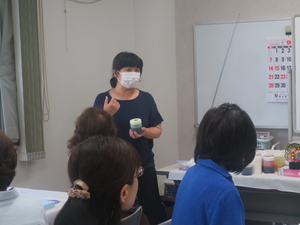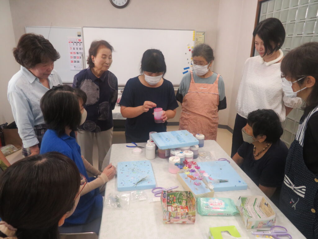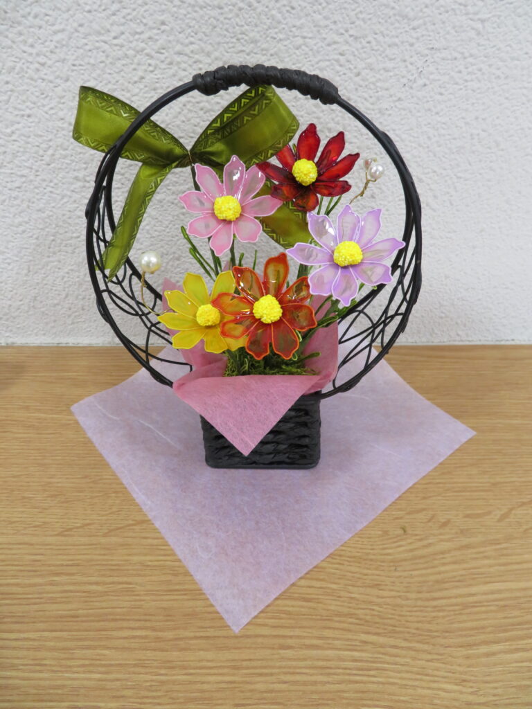9月10日(水)小池久美子先生(アトリエ夢菜)をお迎えし、アメリカンフラワー「コスモスのアレンジ講座」が開催され、10名が参加されました。
