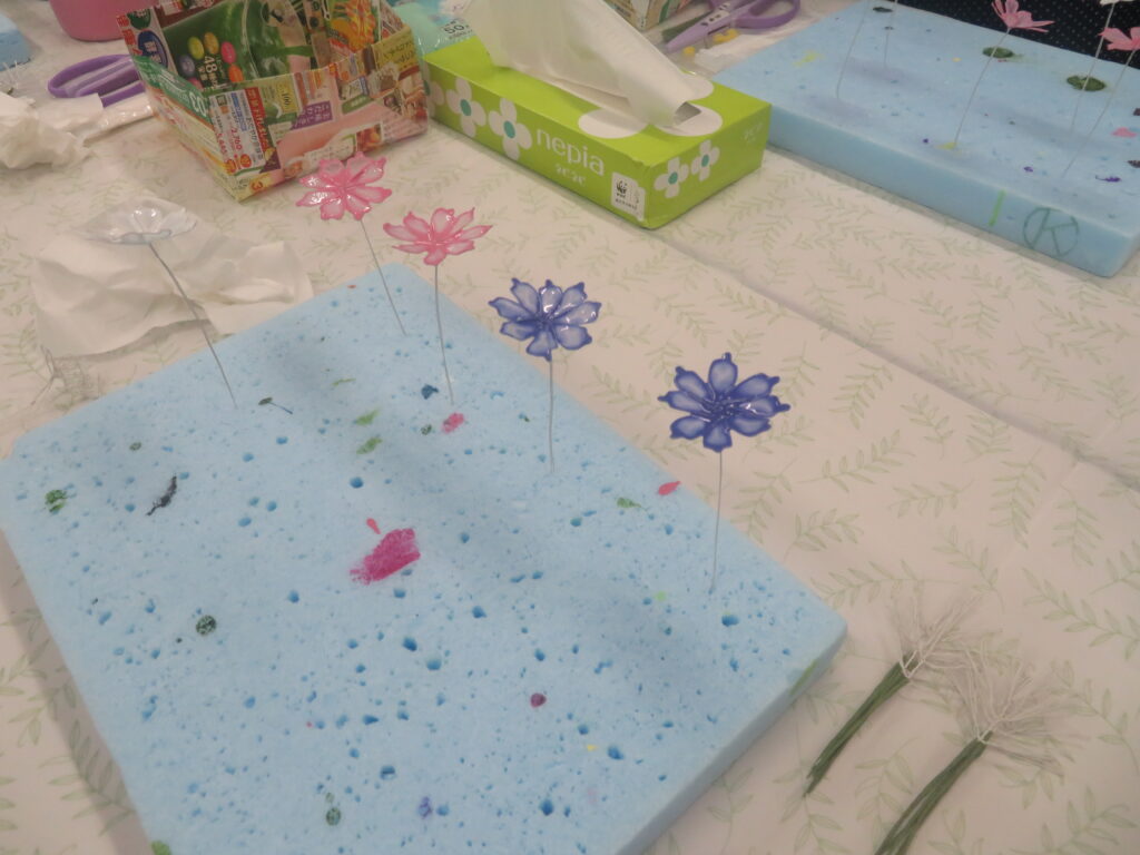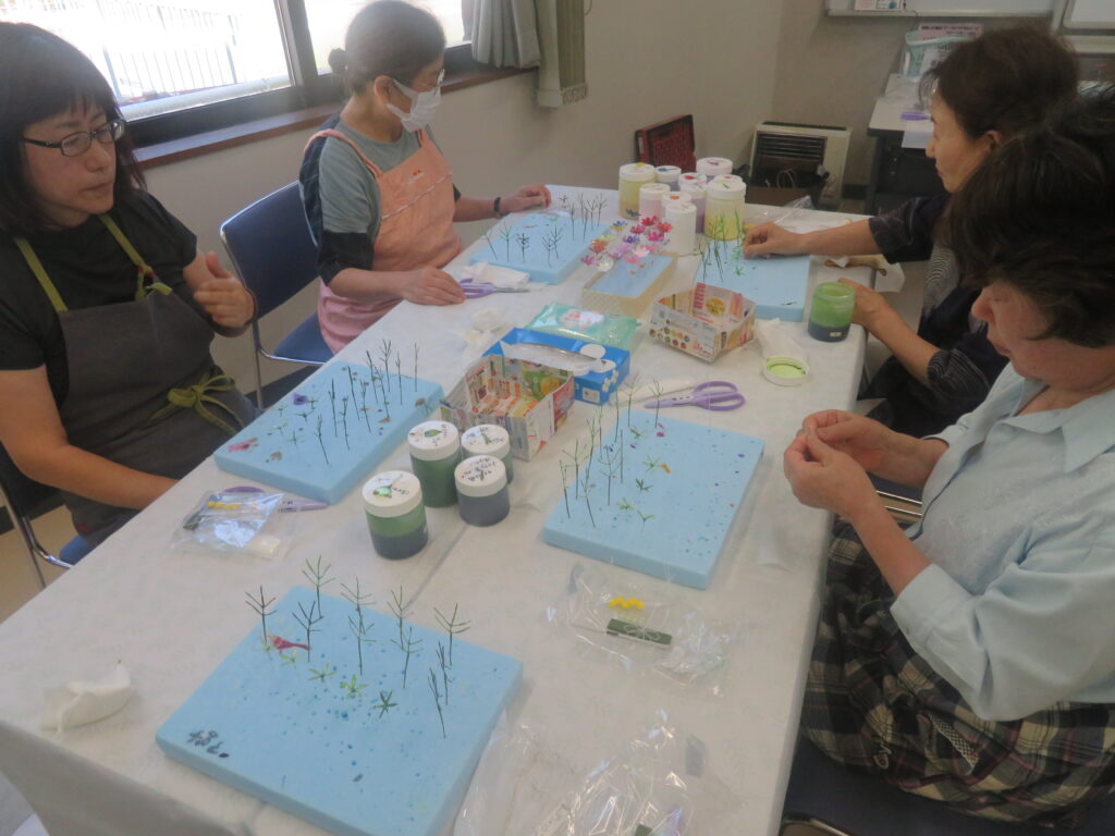 コスモスの花、葉の色を選ぶのにずいぶん悩みましたが、自分の好みのコスモスが完成しました。参加された皆さん、小池先生、ありがとうございました。