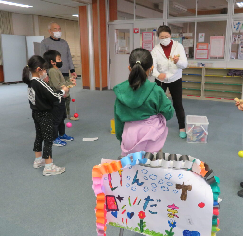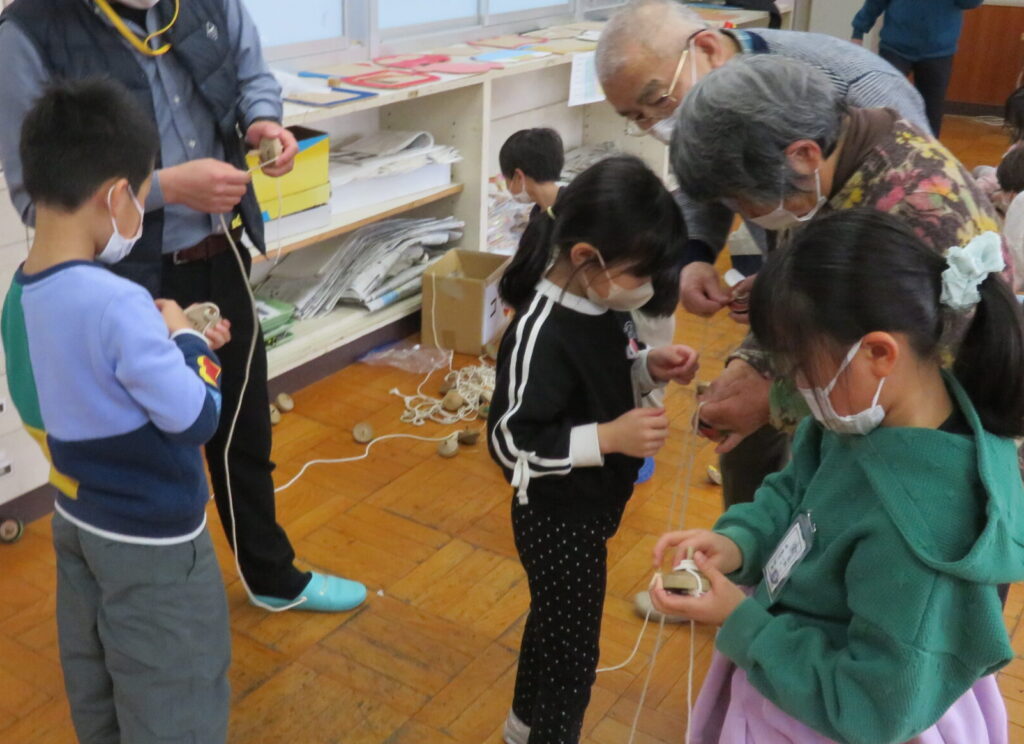 昨年に引き続き、剣野小学校で昔のあそび交流会を行いました。