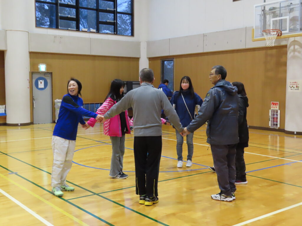 ラジオ体操の後には、楽しく頭を使うミニゲーム・レクリェーションも行われ、冷えた講堂内に笑い声が溢れました。
