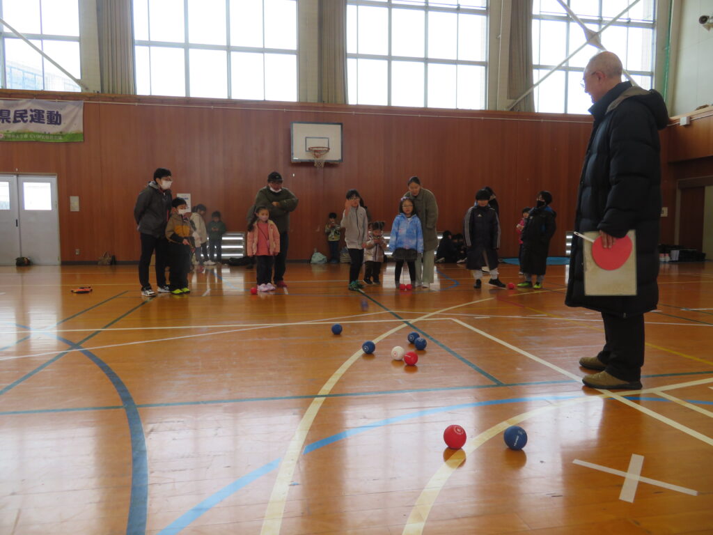 ボッチャ大会は剣野体協と合同で開催し、ボッチャが初めての子どもたちもルールを教えてもらいながら